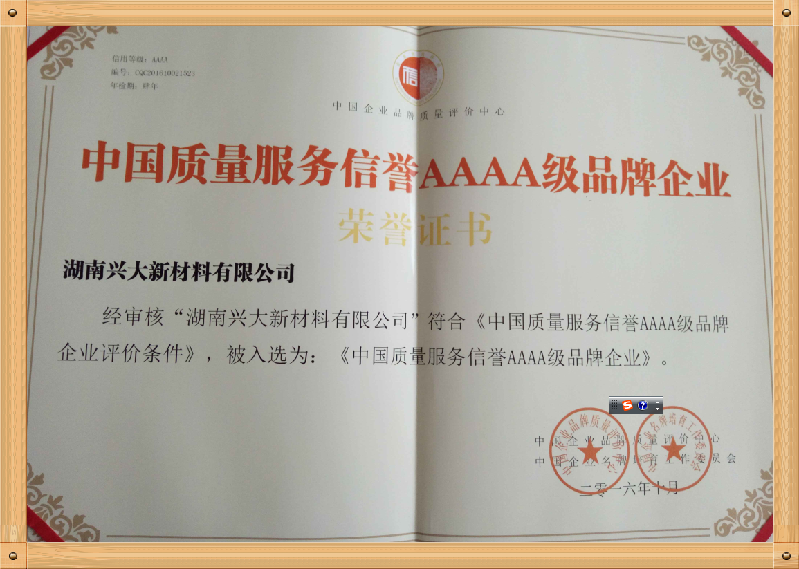 中國(guó)質(zhì)量服務(wù)信譽(yù)AAAA級(jí)品