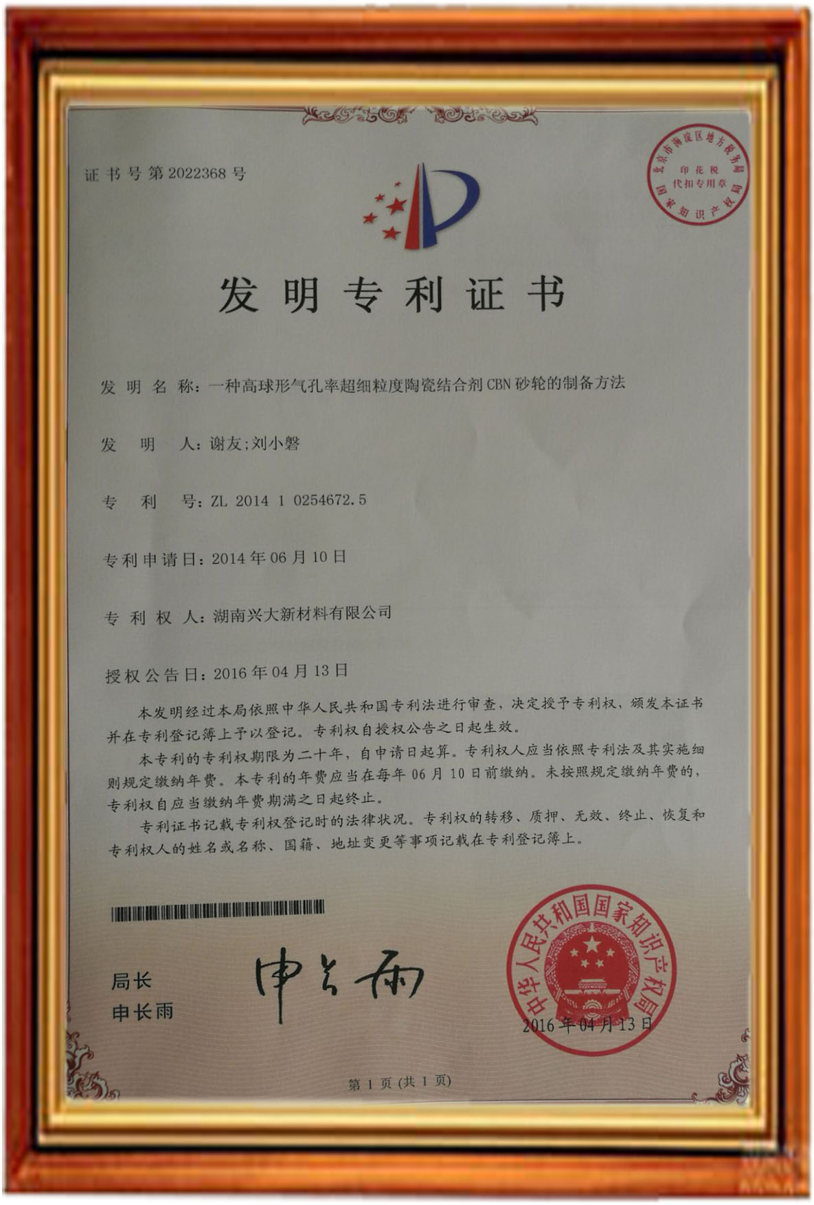 授權(quán)時間:2016年4月13日