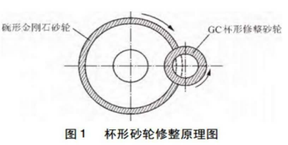 金剛石砂輪修整方法是影響砂輪磨削性能的重要因素,修整方法的合理選擇將直接影響工件的表面質(zhì)量和磨削精度。目前常用的金剛石砂輪修整方法有: 在線電解修整、電火花砂輪修整、杯形砂輪修整、電解—機(jī)械復(fù)合修整和激光修整。由于杯形砂輪修整方法較其他修整方法操作簡單易于實(shí)現(xiàn),因此本文采用 GC 杯形砂輪修整技術(shù)對金剛石砂輪進(jìn)行自動(dòng)修整。
